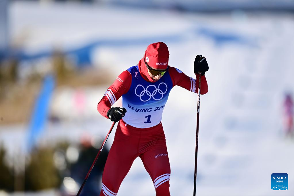 Natalia Nepryaeva of ROC competes during the Cross-Country Skiing Women's 7.5km + 7.5km Skiathlon at National Cross-Country Skiing Centre in Zhangjiakou, north China's Hebei Province, Feb. 5, 2022. (Xinhua/Zhang Hongxiang)