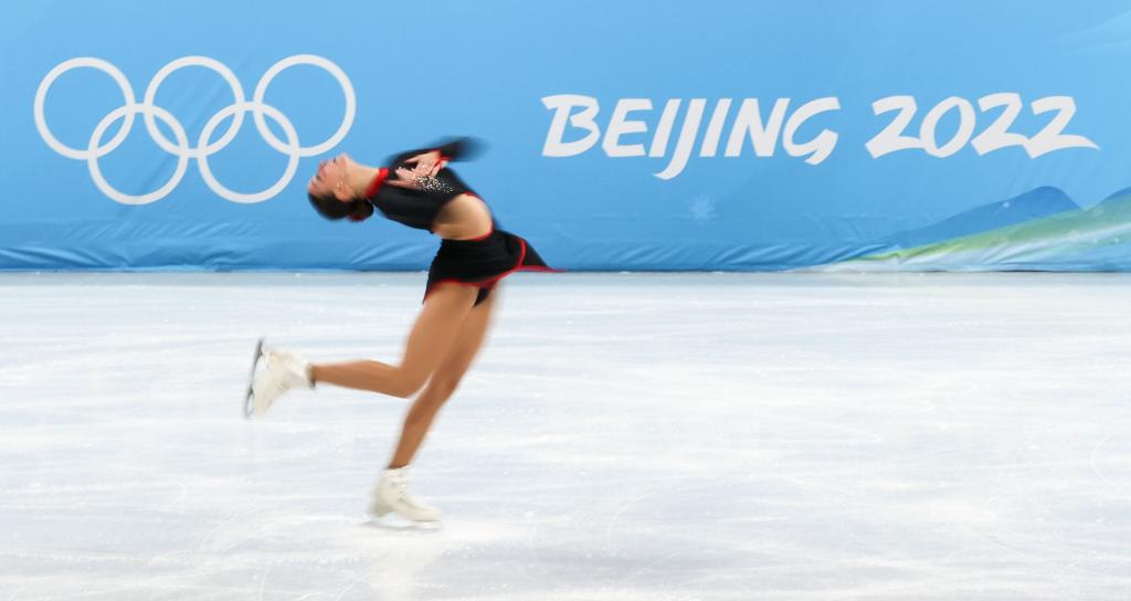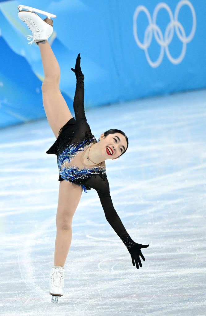 Karen Chen of the United States performs during the figure skating team event women's single skating short program match at Capital Indoor Stadium in Beijing, capital of China, Feb. 6, 2022. (Xinhua/Li Yibo)