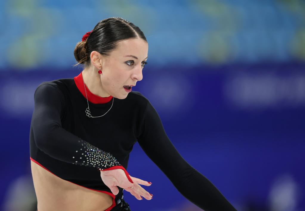 Lara Naki Gutmann of Italy performs during the figure skating team event women's single skating short program match at Capital Indoor Stadium in Beijing, capital of China, Feb. 6, 2022. (Xinhua/Lan Hongguang)