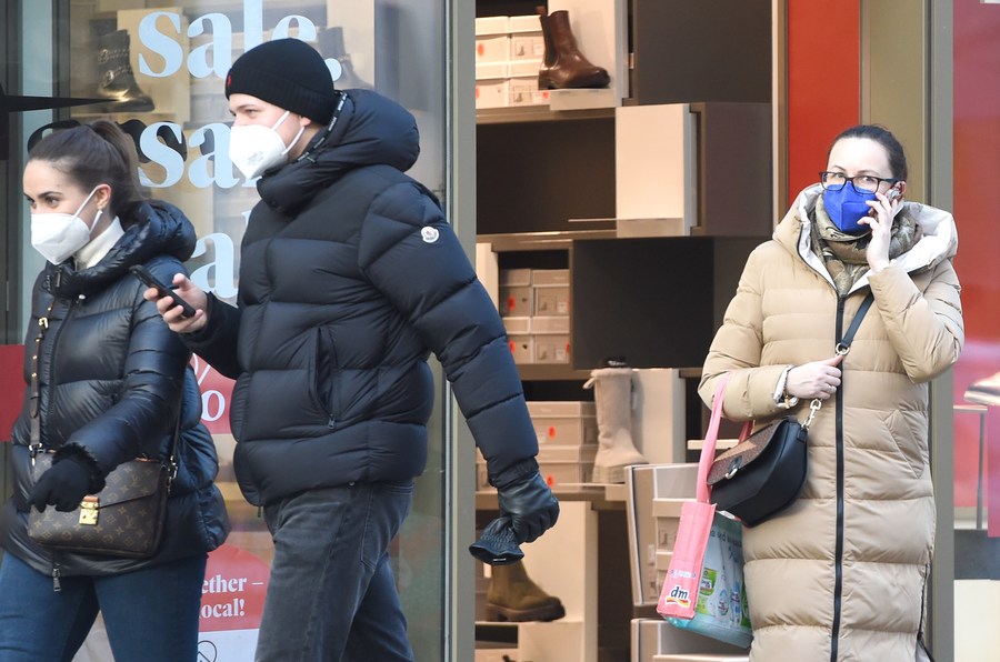People wearing FFP2 masks walk on a street in Vienna, Austria, on Jan. 11, 2022. (Xinhua/Guo Chen)■