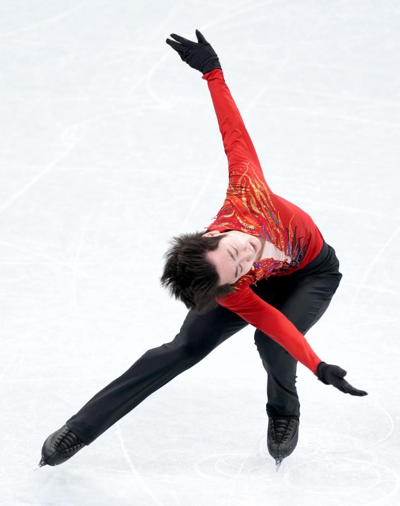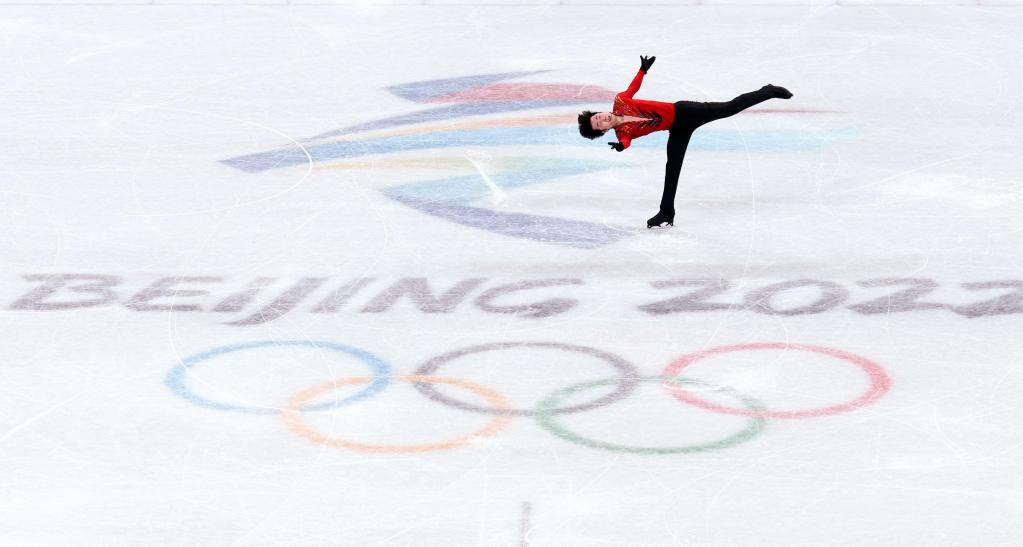 Jin Boyang of China performs during the figure skating team event men's single skating free skating match at Capital Indoor Stadium in Beijing, capital of China, Feb. 6, 2022. (Xinhua/Chen Jianli)