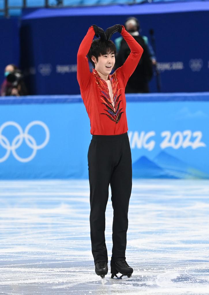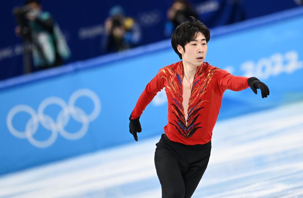 Jin Boyang of China performs during the figure skating team event men's single skating free skating match at Capital Indoor Stadium in Beijing, capital of China, Feb. 6, 2022. (Xinhua/Ma Ning)