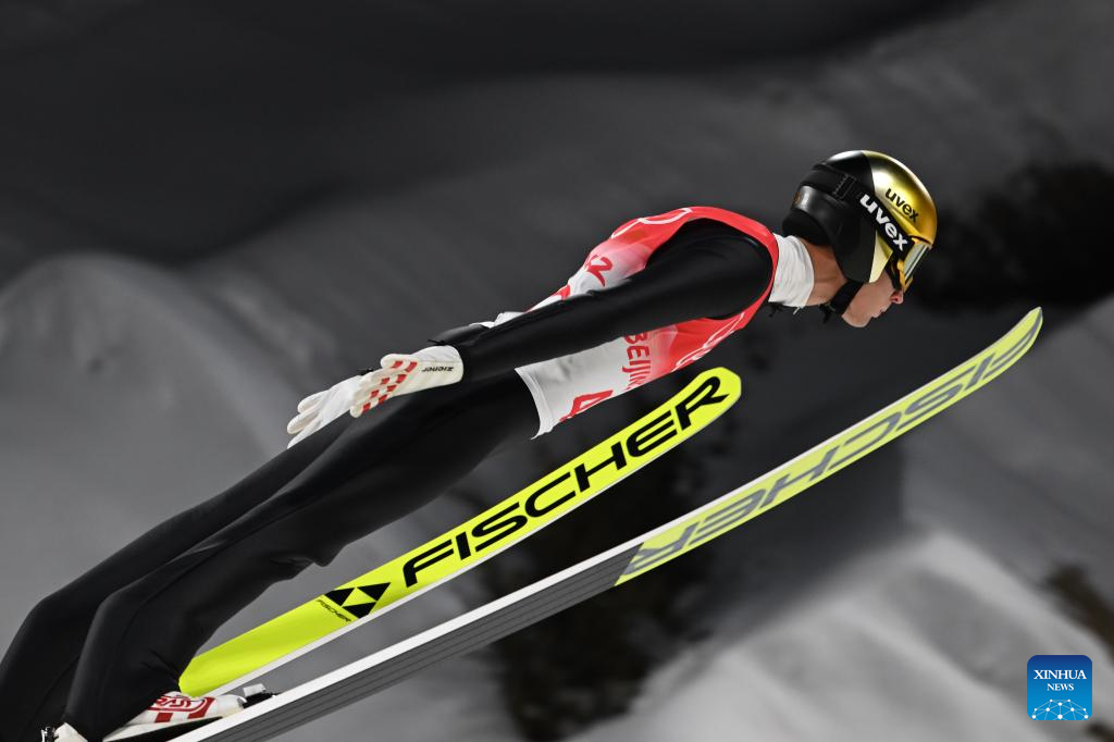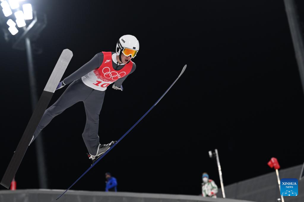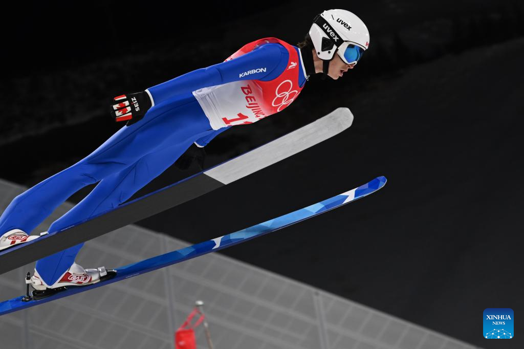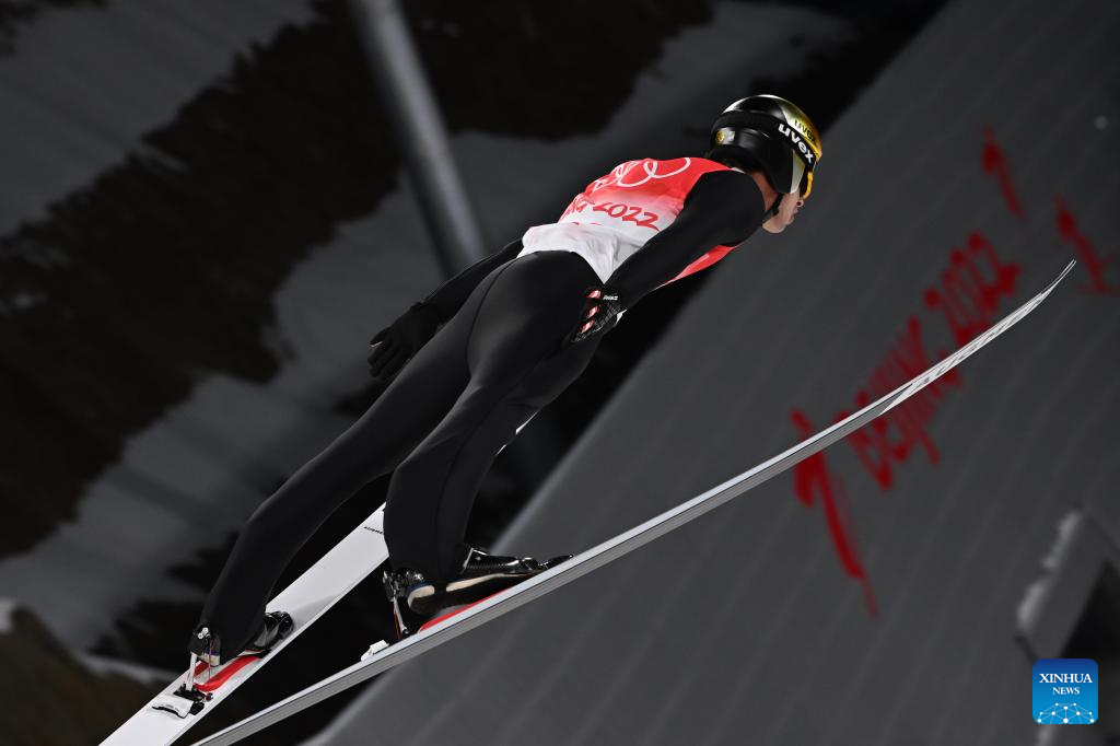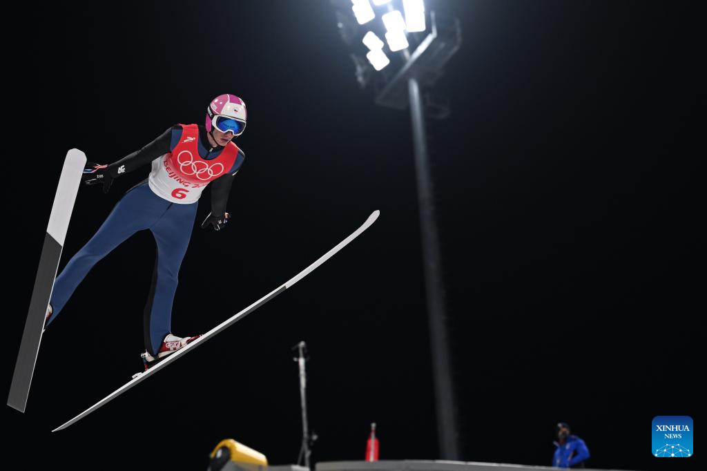 Cestmir Kozisek of the Czech Republic competes during Ski Jumping Men's Normal Hill Individual 1st Round at the National Ski Jumping Centre in Zhangjiakou, north China's Hebei Province, Feb. 6, 2022. (Xinhua/Feng Kaihua)