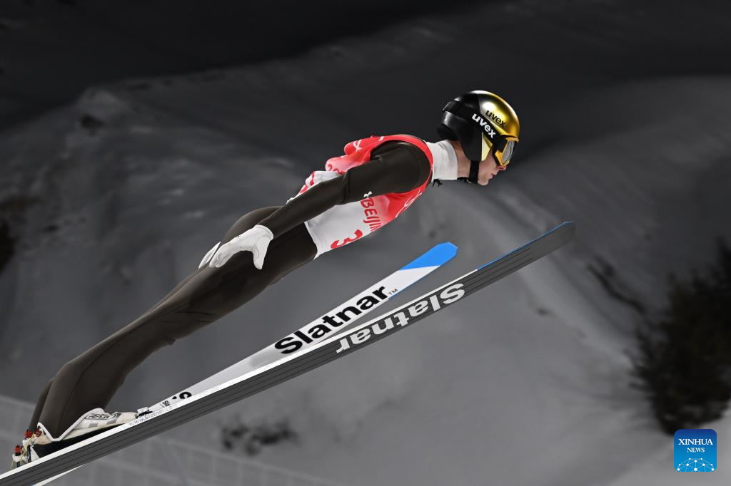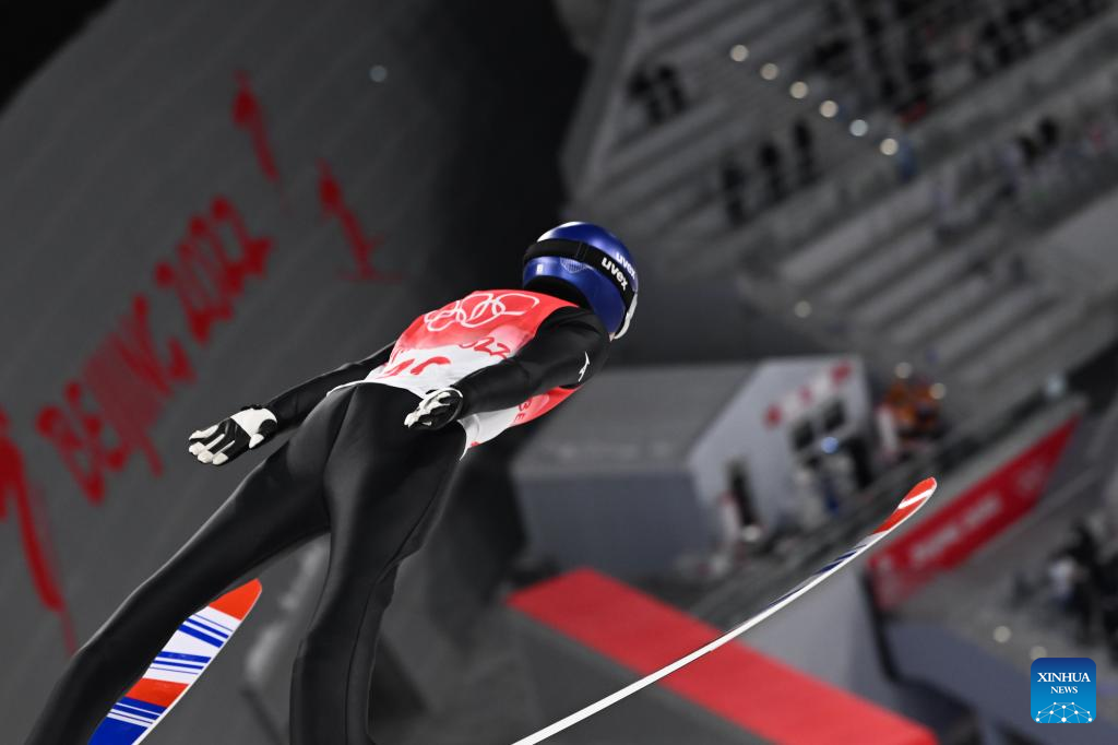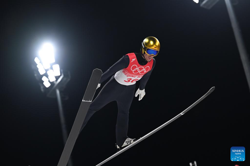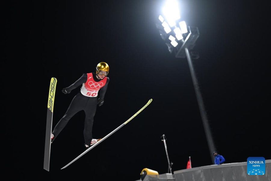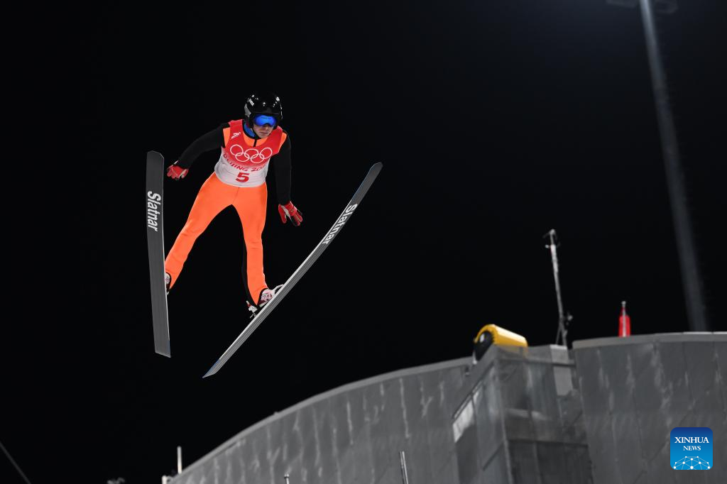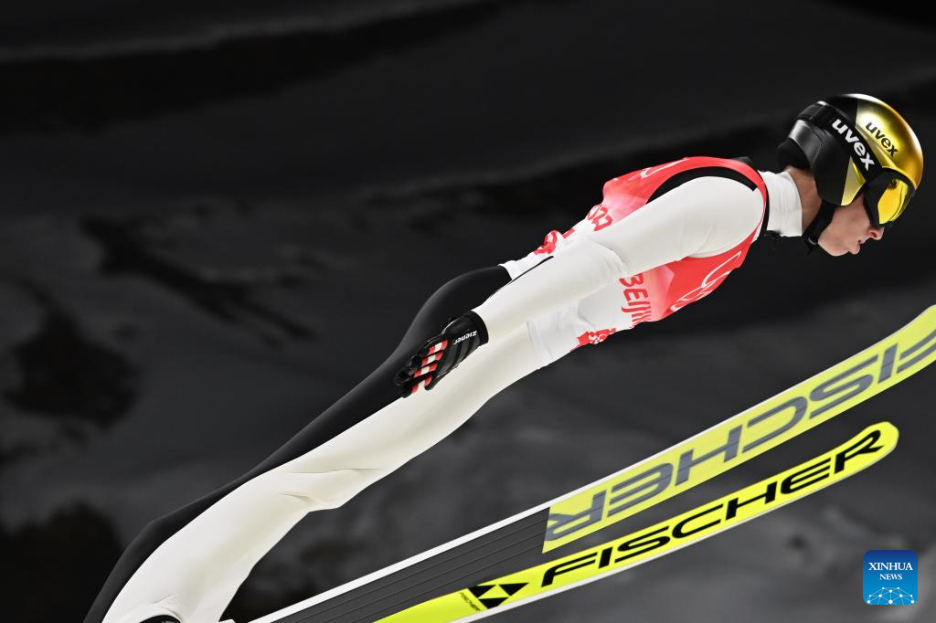 Cestmir Kozisek of the Czech Republic competes during Ski Jumping Men's Normal Hill Individual 1st Round at the National Ski Jumping Centre in Zhangjiakou, north China's Hebei Province, Feb. 6, 2022. (Xinhua/Feng Kaihua)