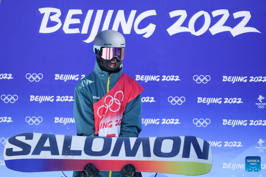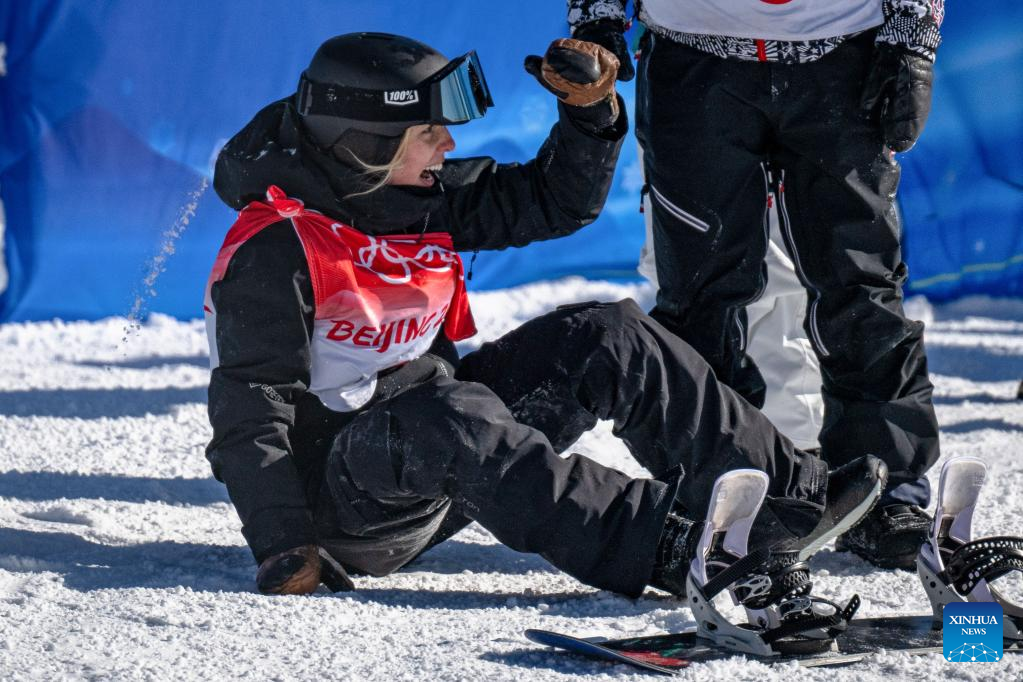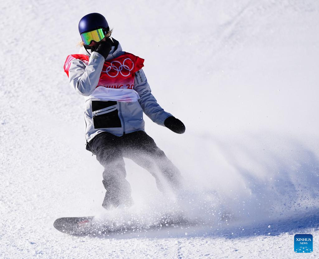 Tess Coady of Australia reacts during the women's snowboard slopestyle final at the Genting Snow Park in Zhangjiakou, north China's Hebei Province, Feb. 6, 2022. (Xinhua/Xue Yubin)