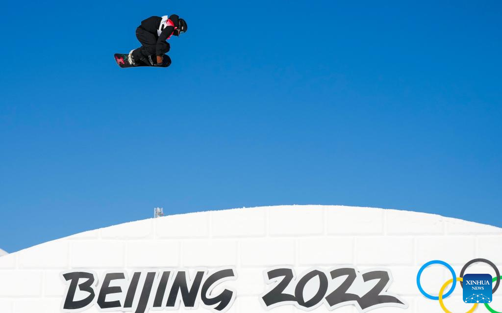 Murase Kokomo of Japan competes during the women's snowboard slopestyle final at the Genting Snow Park in Zhangjiakou, north China's Hebei Province, Feb. 6, 2022. (Xinhua/Xu Chang)