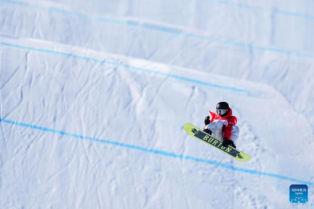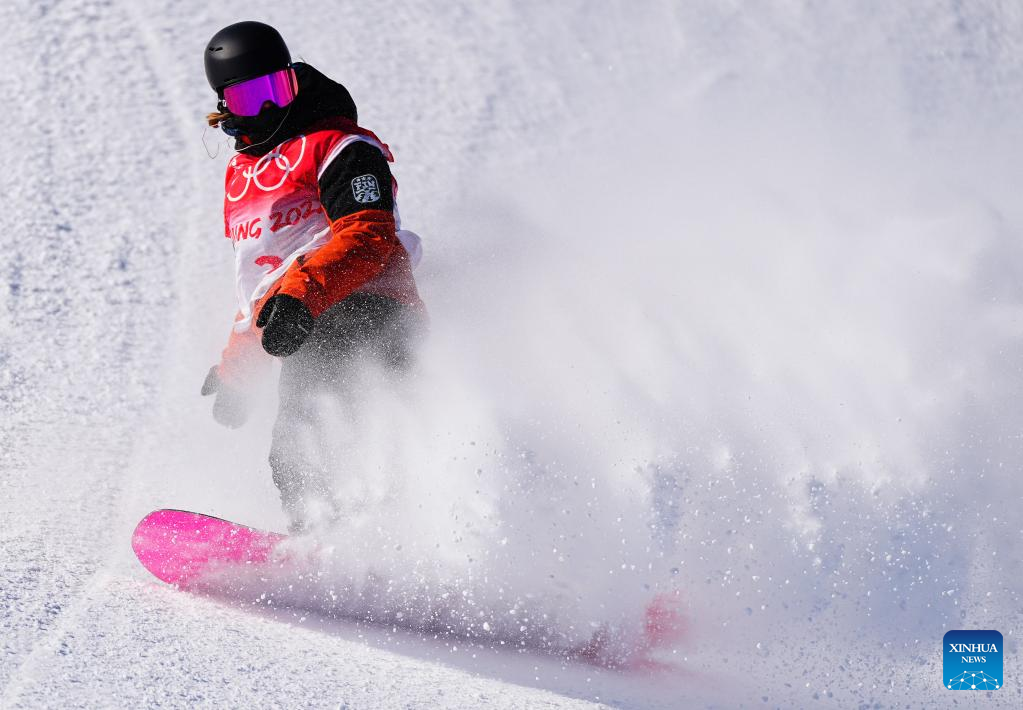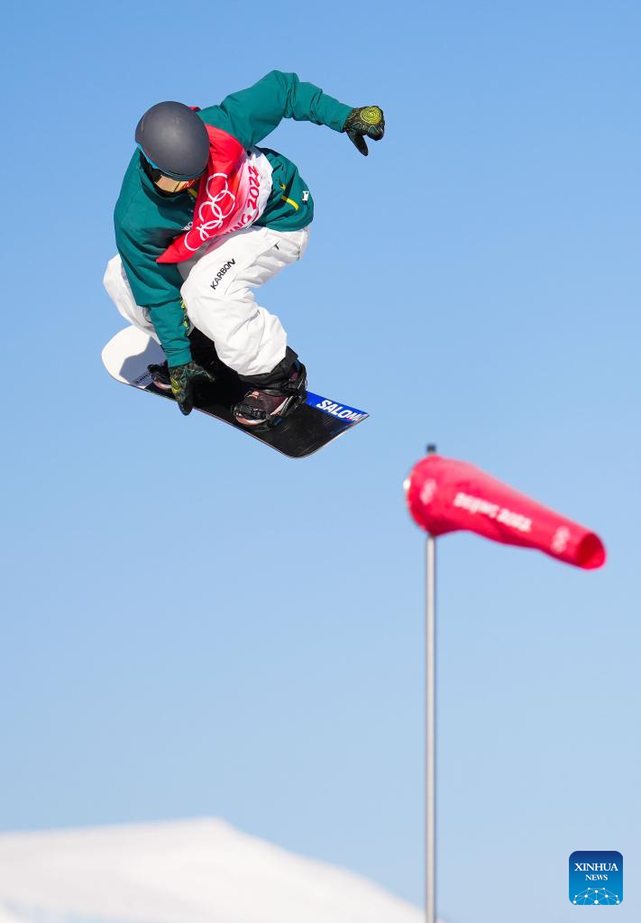 Tess Coady of Australia competes during the women's snowboard slopestyle final at the Genting Snow Park in Zhangjiakou, north China's Hebei Province, Feb. 6, 2022. (Xinhua/Wang Haofei)