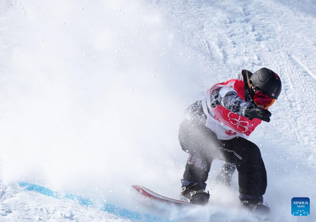 Hailey Langland of the United States competes during the women's snowboard slopestyle final at the Genting Snow Park in Zhangjiakou, north China's Hebei Province, Feb. 6, 2022. (Xinhua/Xu Chang)