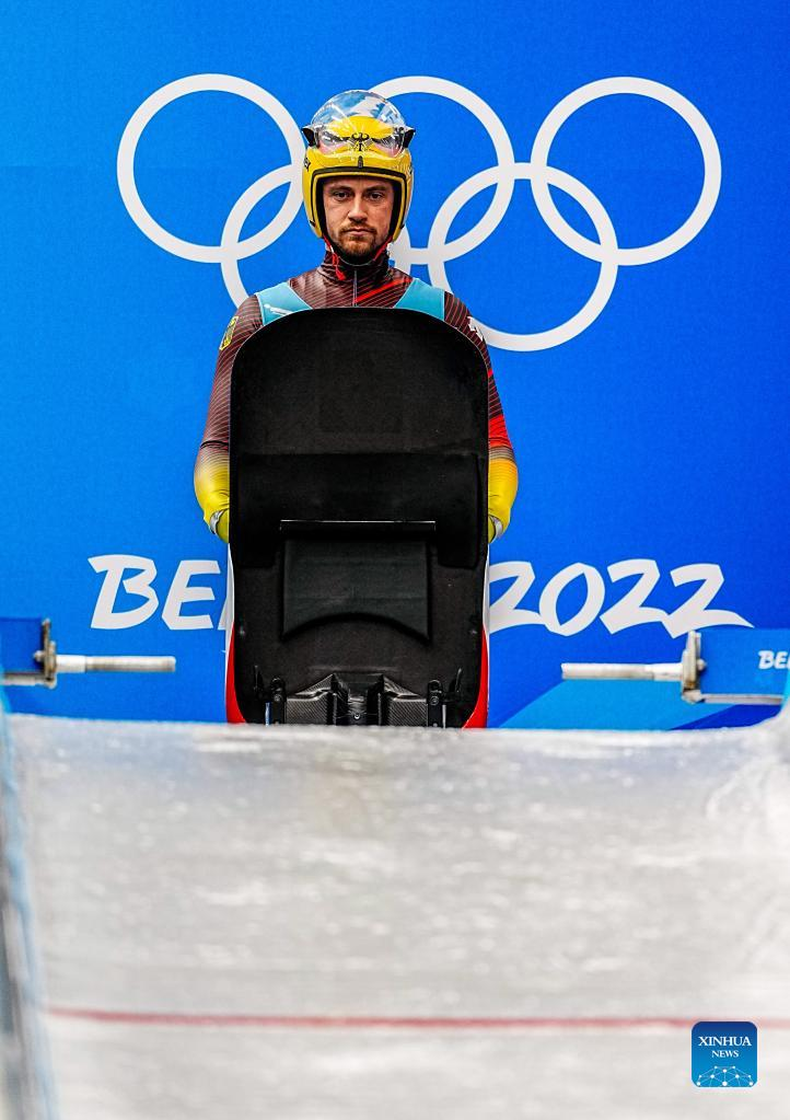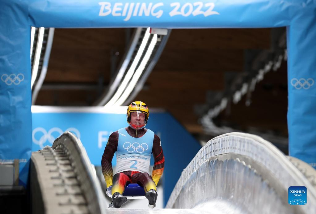 Felix Loch of Germany competes during Men's Singles Run of luge event at the Yanqing National Sliding Centre in Yanqing District of Beijing, capital of China, Feb. 6, 2022. (Xinhua/Yao Jianfeng)