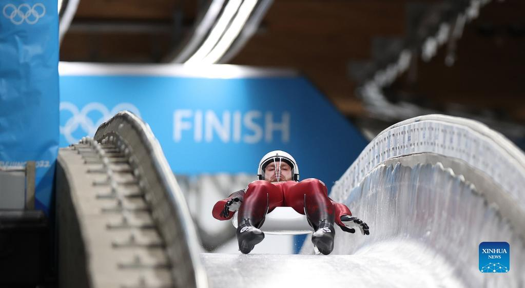 David Gleirscher of Austria competes during Men's Singles Run of luge event at the Yanqing National Sliding Centre in Yanqing District of Beijing, capital of China, Feb. 6, 2022. (Xinhua/Jiang Wenyao)