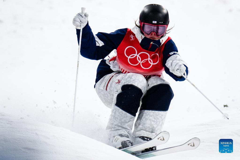 Jaelin Kauf of the United States competes during the freestyle skiing women's moguls final at the Genting Snow Park in Zhangjiakou, north China's Hebei Province, Feb. 6, 2022. (Xinhua/Xiao Yijiu)