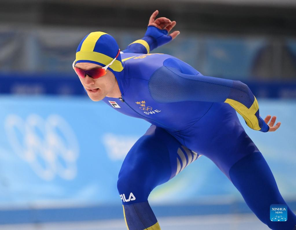 Nils van der Poel of Sweden competes during the men's 5,000m final of speed skating at the National Speed Skating Oval in Beijing, capital of China, Feb. 6, 2022. (Xinhua/Wu Wei)