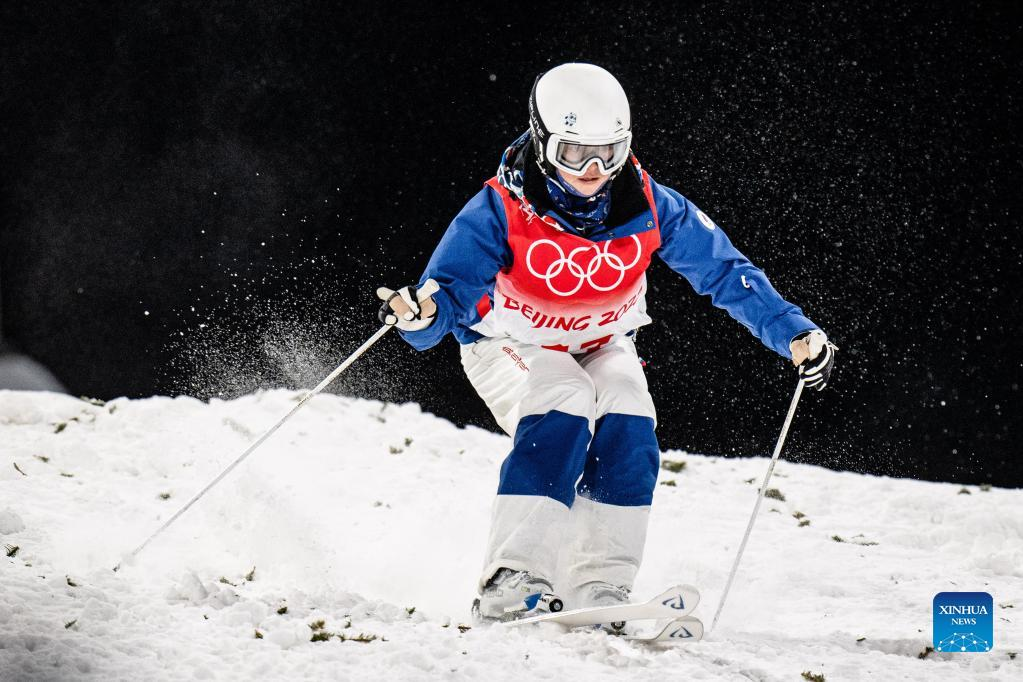 Anastasiia Smirnova of ROC competes during the freestyle skiing women's moguls final at the Genting Snow Park in Zhangjiakou, north China's Hebei Province, Feb. 6, 2022. (Xinhua/Xiao Yijiu)