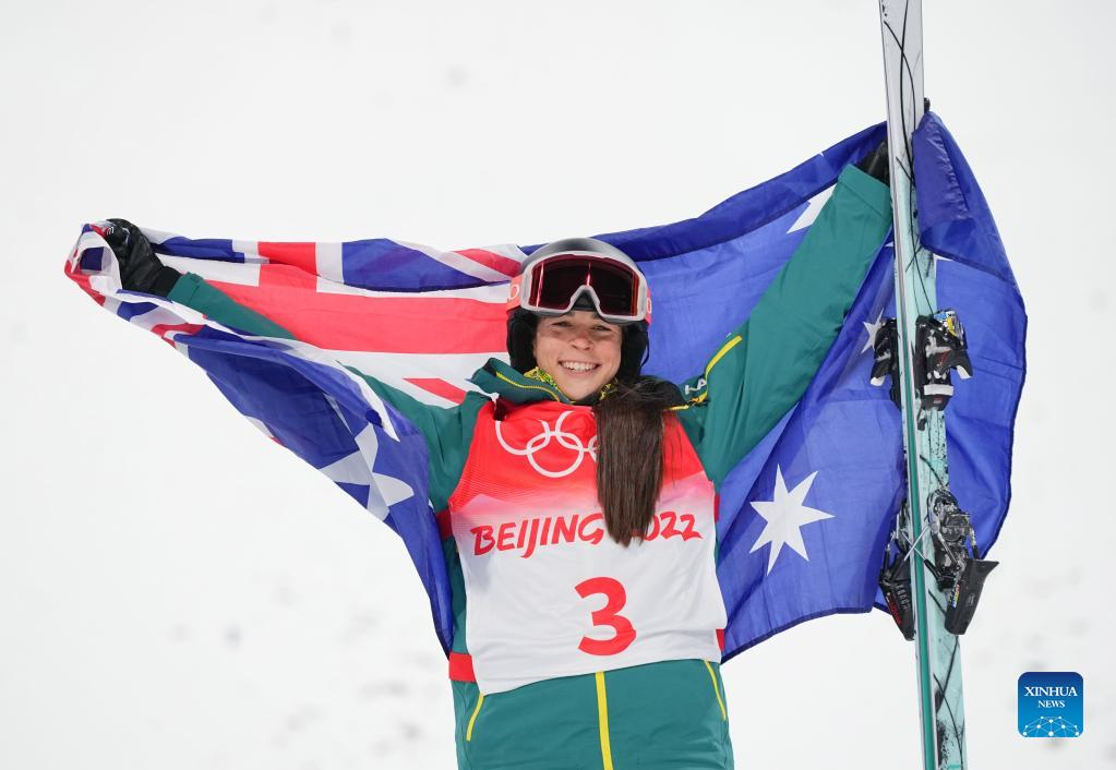 BEIJING, Feb. 6 (Xinhua) -- Jakara Anthony came victorious in the freestyle skiing women's moguls at the Genting Snow Park in Chongli, Zhangjiakou on Sunday, thus becoming the first Australian female to win an Olympic moguls gold.