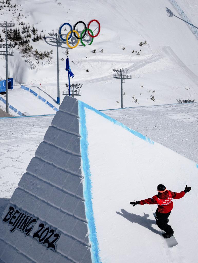 Canada's Max Parrot competes during men's snowboard slopestyle final at the Genting Snow Park in Zhangjiakou, north China's Hebei Province, Feb. 7, 2022. (Xinhua/Wu Zhuang)