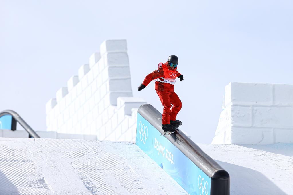 China's Su Yiming competes during men's snowboard slopestyle final at the Genting Snow Park in Zhangjiakou, north China's Hebei Province, Feb. 7, 2022. (Xinhua/Xiao Yijiu)