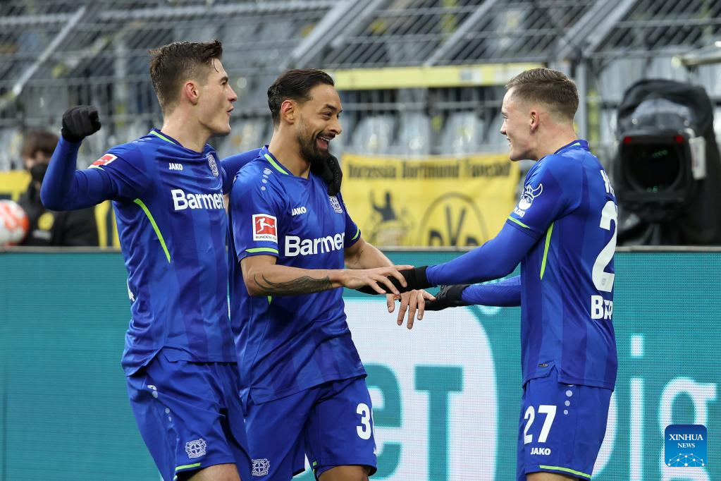 BERLIN, Feb. 6 (Xinhua) -- Borussia Dortmund suffered a setback in the title race after third-placed Bayer Leverkusen clinched a stunning 5-2 victory at the closing of the 21st round on Sunday.