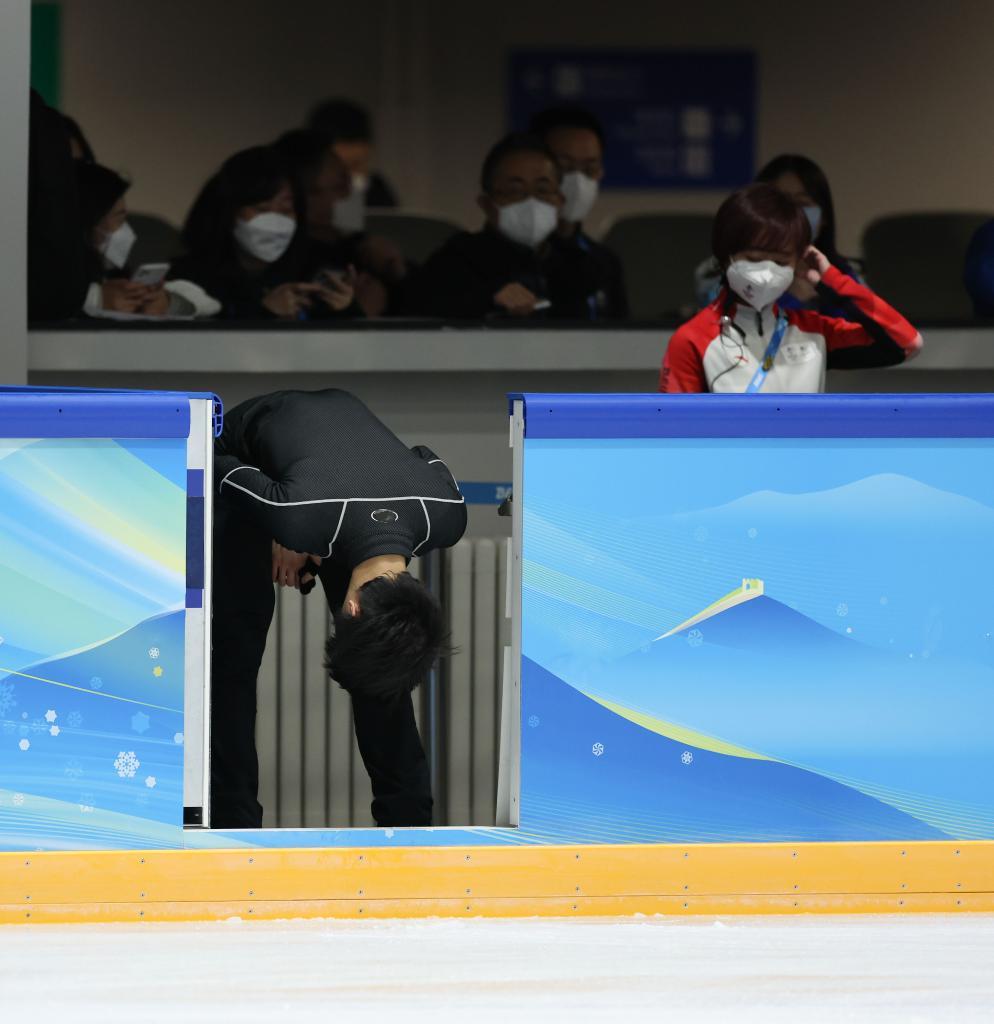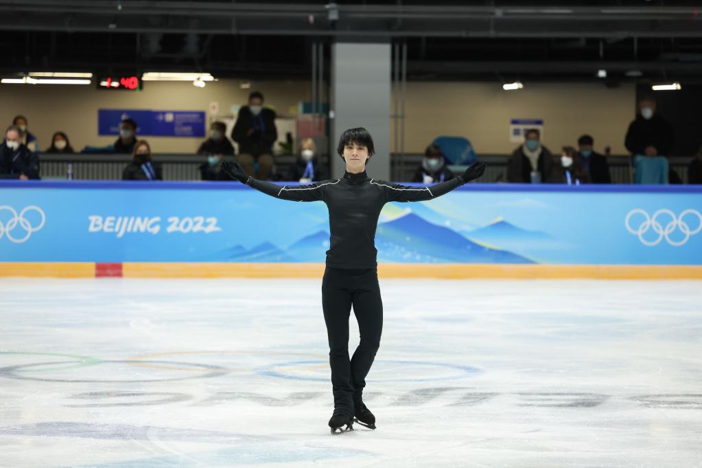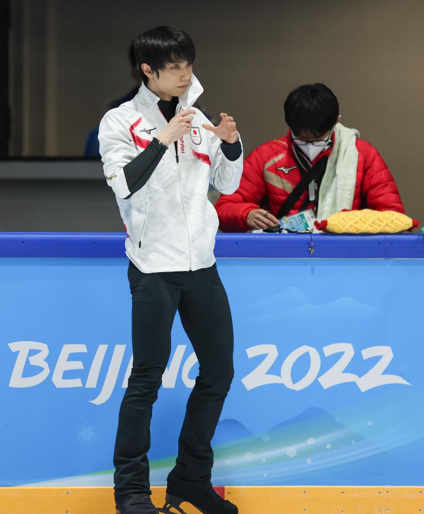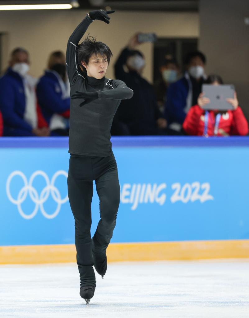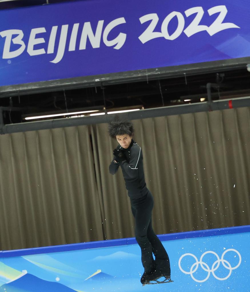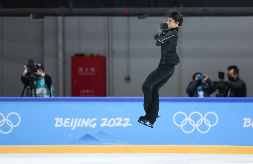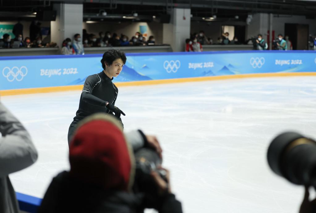 Hanyu Yuzuru of Japan trains at Capital Indoor Stadium in Beijing, capital of China, Feb. 7, 2022. (Xinhua/Cao Can)