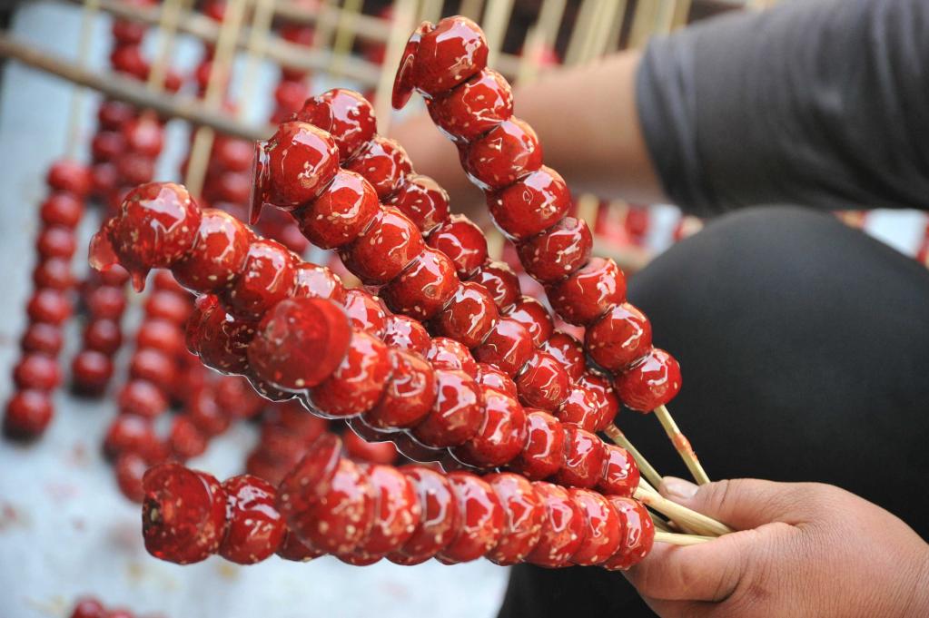 Photo taken on April 8, 2014 shows a villager from Yuncheng City, north China's Shanxi Province, is making sugar-coated haws. (Xinhua)