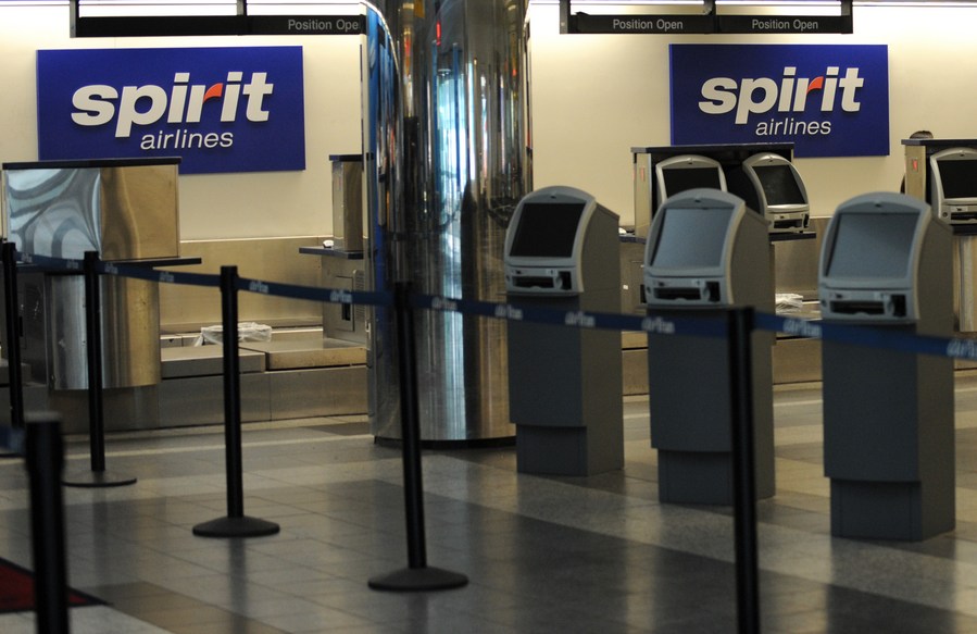 File photo taken on June 14, 2010 shows the check-in counters of the Spirit Airlines at LaGuardia Airport in New York, the United States. (Xinhua/Shen Hong)