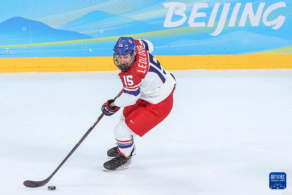 Aneta Ledlova of Czech Republic competes during the ice hockey women's preliminary round group B match between Japan and Czech Republic at Wukesong Sports Centre in Beijing, capital of China, Feb. 8, 2022. (Xinhua/Zhang Yuwei)