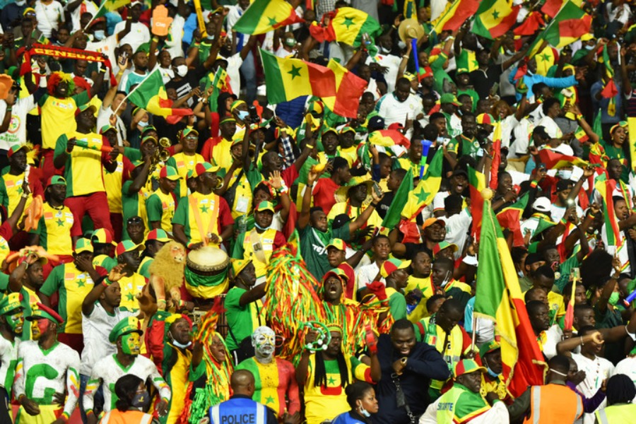 Fans of Senegal celebrate winning the final match between Senegal and Egypt at 2021 Africa Cup of Nations (AFCON) in Yaounde, Cameroon, Feb. 6, 2022. (Xinhua/Kepseu)