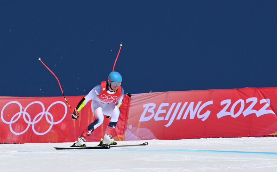 Aleksander Aamodt Kilde of Norway competes during the Alpine Skiing Men's Super-G at the National Alpine Skiing Centre in Yanqing District, Beijing, capital of China, Feb. 8, 2022. (Xinhua/Chen Yichen)