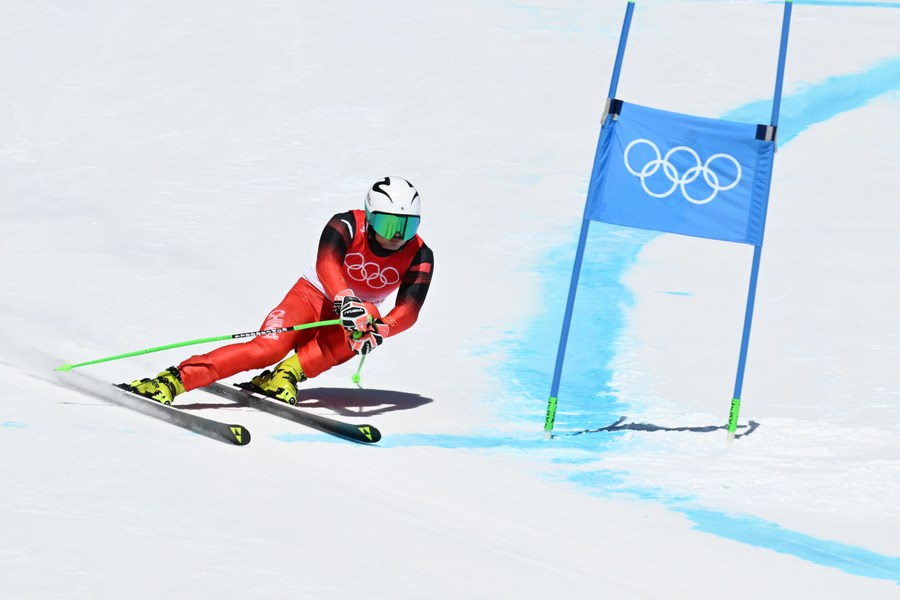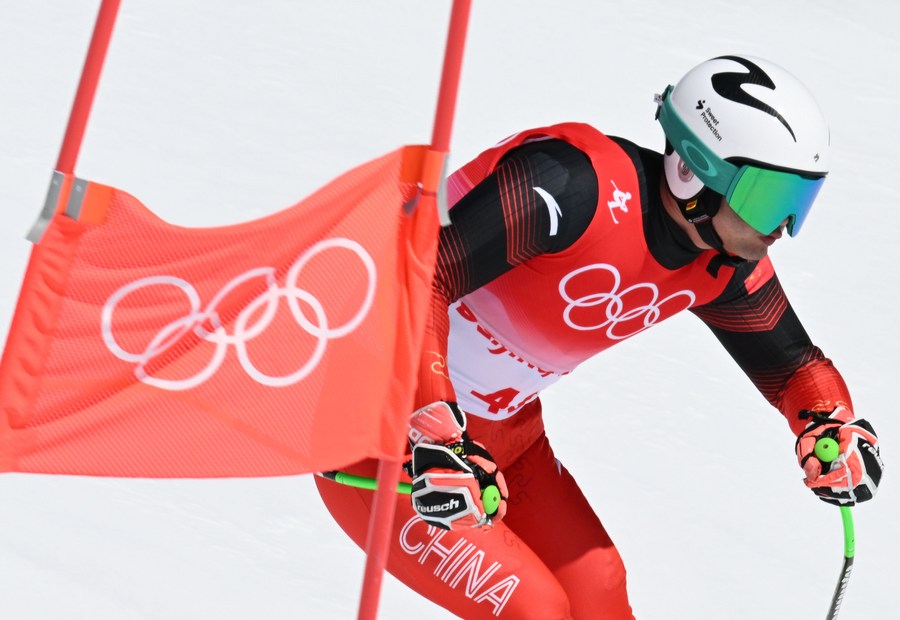 Zhang Yangming of China competes during the Alpine Skiing Men's Super-G at the National Alpine Skiing Centre in Yanqing District, Beijing, capital of China, Feb. 8, 2022. (Xinhua/Zhang Chenlin)