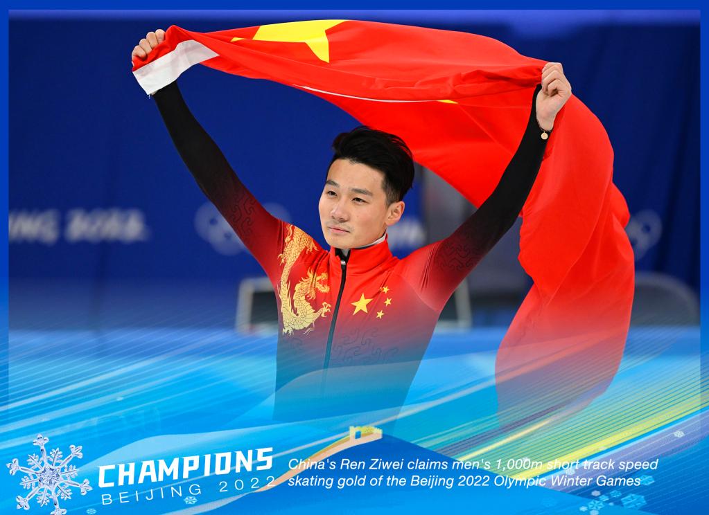 BEIJING, Feb. 8 (Xinhua) -- China's Ren Ziwei clinched his first individual gold medal in the men's 1,000-meter short track speed skating in one minute, 26.768 seconds at Beijing 2022 on Monday.