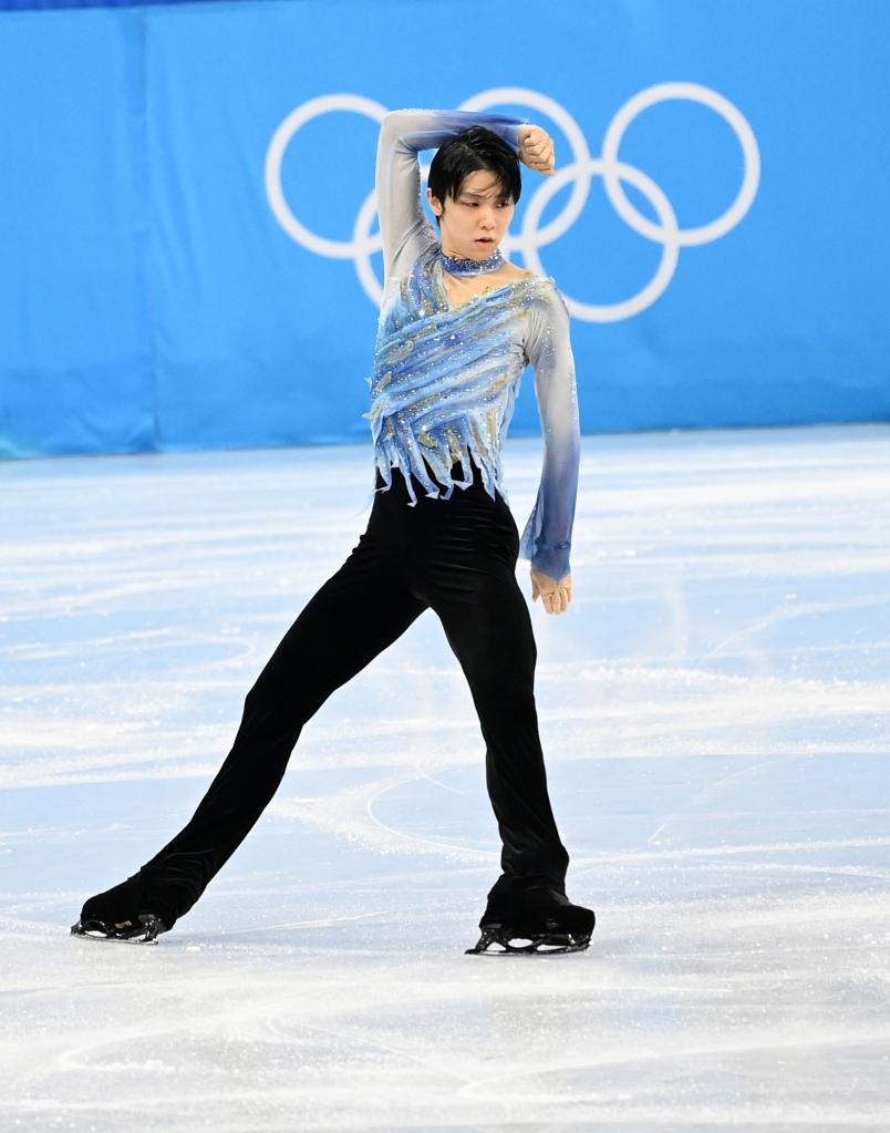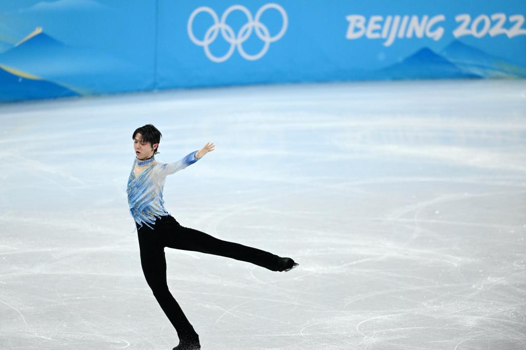 Hanyu Yuzuru of Japan performs during the figure skating men single skating short program at Capital Indoor Stadium in Beijing, capital of China, Feb. 8, 2022. (Xinhua/Li Yibo)