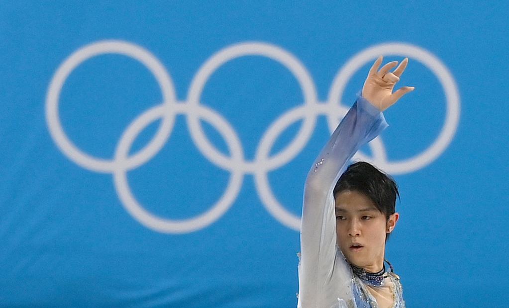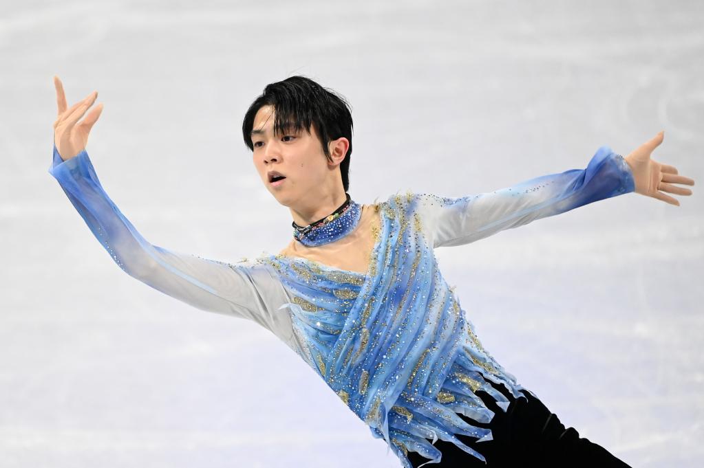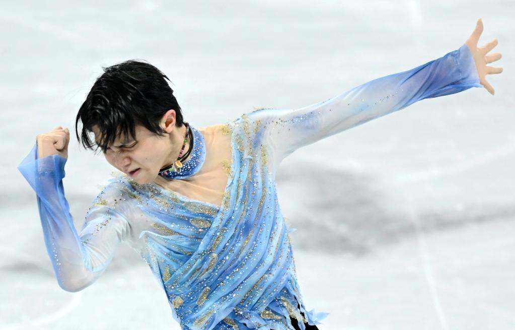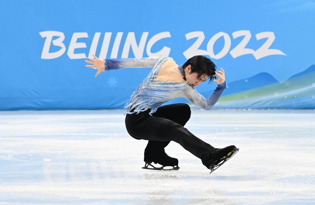 Hanyu Yuzuru of Japan performs during the figure skating men single skating short program at Capital Indoor Stadium in Beijing, capital of China, Feb. 8, 2022. (Xinhua/Liu Xiao)