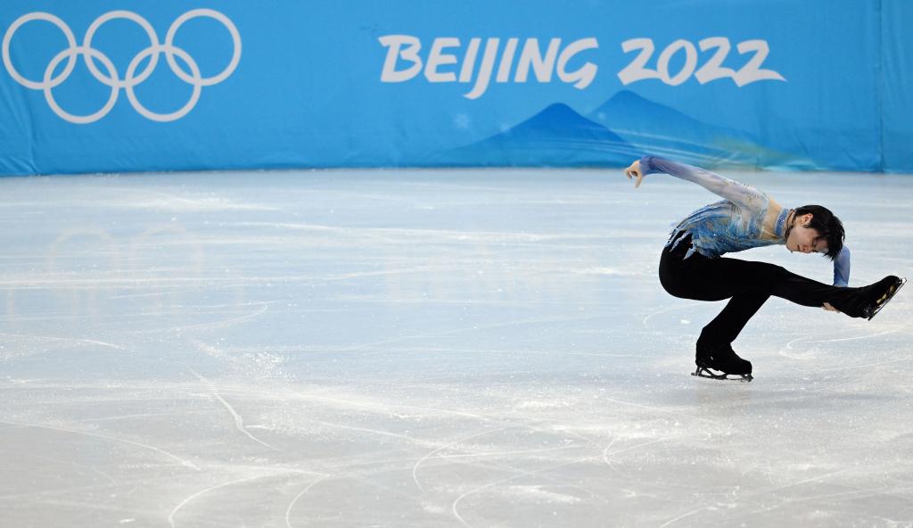 Hanyu Yuzuru of Japan performs during the figure skating men single skating short program at Capital Indoor Stadium in Beijing, capital of China, Feb. 8, 2022. (Xinhua/Ma Ning)