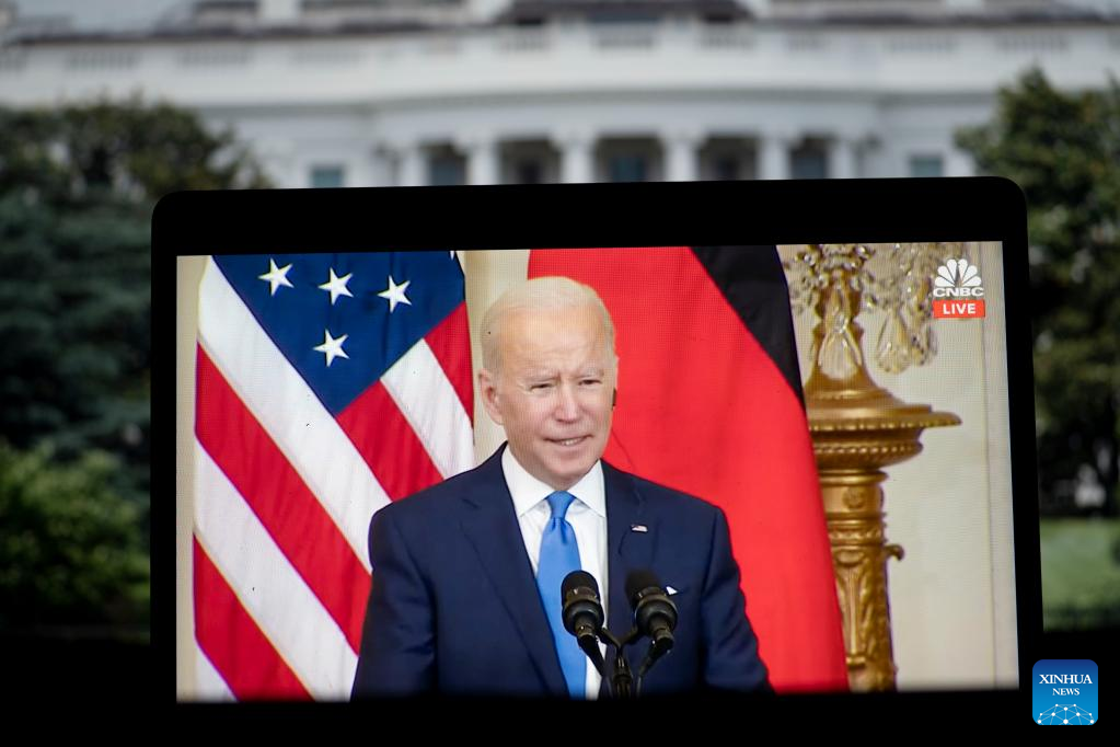 WASHINGTON, Feb. 7 (Xinhua) -- U.S. President Joe Biden reaffirmed Monday that a joint gas pipeline project between Germany and Russia won't advance if Russia invades Ukraine, stopping short of explaining how it will be achieved if Germany has reservations for that decision as a deterrence against Moscow.