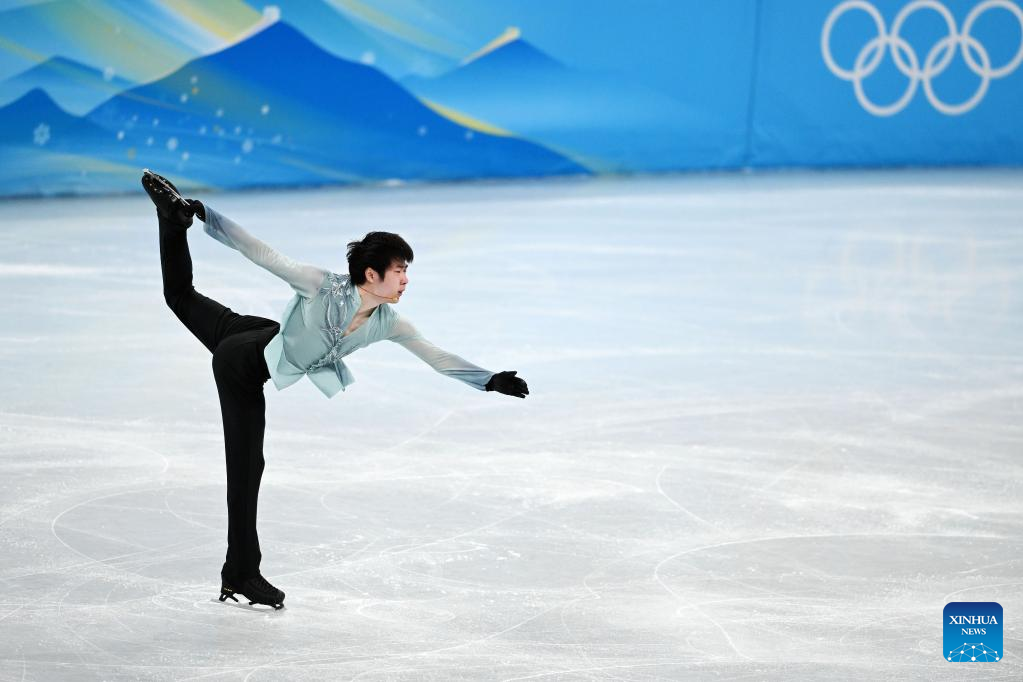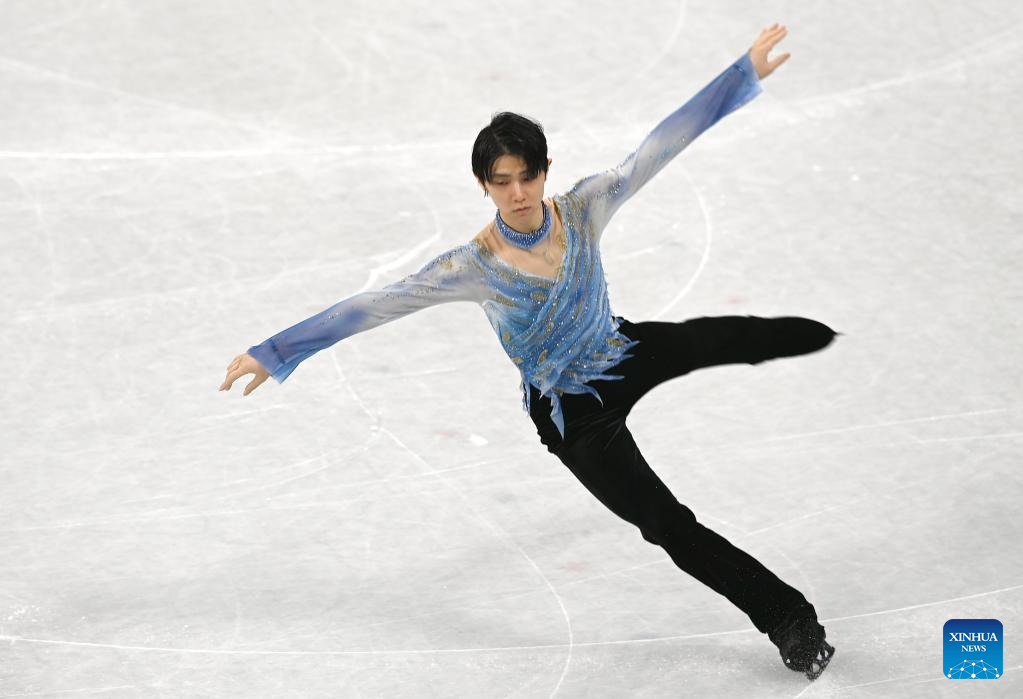 Hanyu Yuzuru of Japan performs during the figure skating men single skating short program at Capital Indoor Stadium in Beijing, capital of China, Feb. 8, 2022. (Xinhua/Cao Can)
