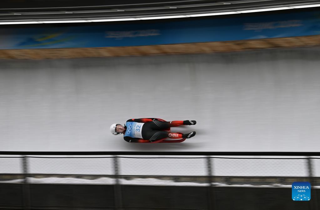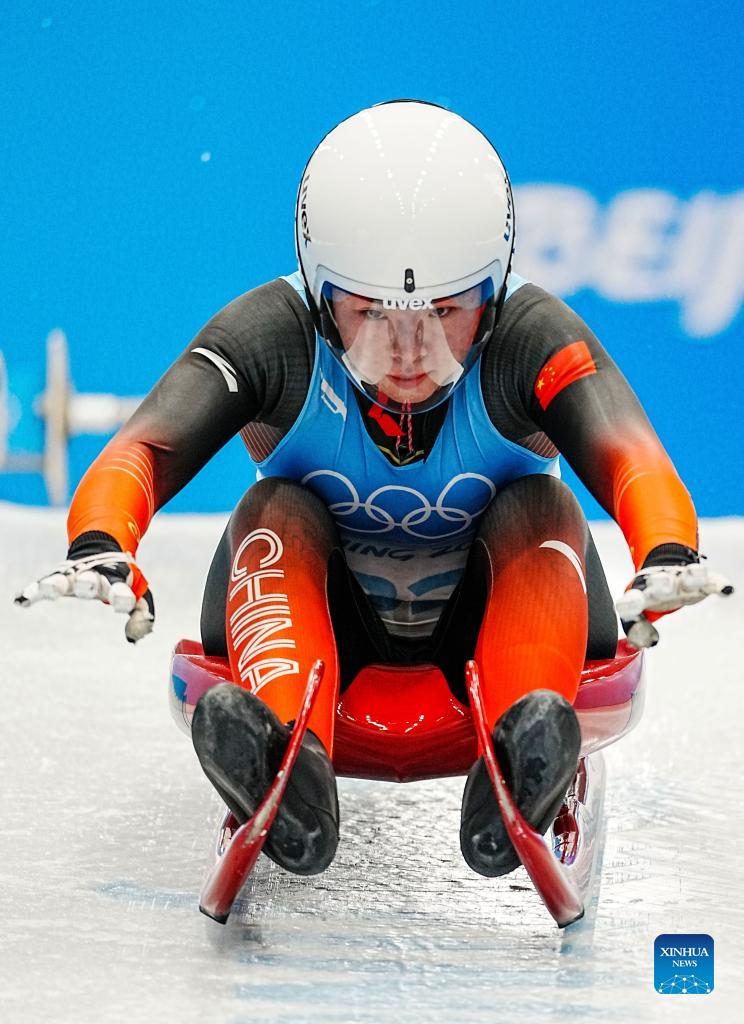 Wang Peixuan of China competes during women's singles run of luge event at the Yanqing National Sliding Centre in Yanqing district of Beijing, capital of China, Feb. 8, 2022. (Xinhua/Sun Fei)