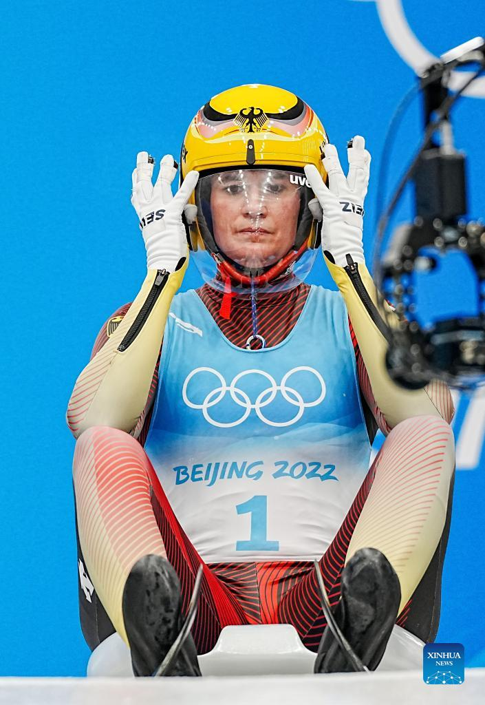 YANQING, Beijing, Feb. 8 (Xinhua) -- Natalie Geisenberger from Germany became the first luger to win the women's singles Olympic gold medal three times in history at the Beijing Winter Olympics here on Tuesday.
