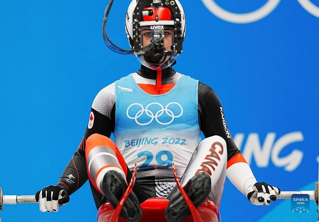 Natalie Corless of Canada prepares to start during women's singles run of luge event at the Yanqing National Sliding Centre in Yanqing district of Beijing, capital of China, Feb. 8, 2022. (Xinhua/He Changshan)