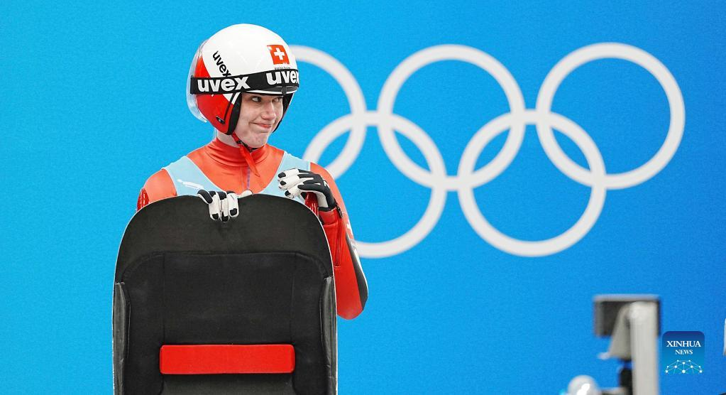 Natalie Maag of Switzerland prepares to start during women's singles run of luge event at the Yanqing National Sliding Centre in Yanqing district of Beijing, capital of China, Feb. 8, 2022. (Xinhua/Jiang Wenyao)
