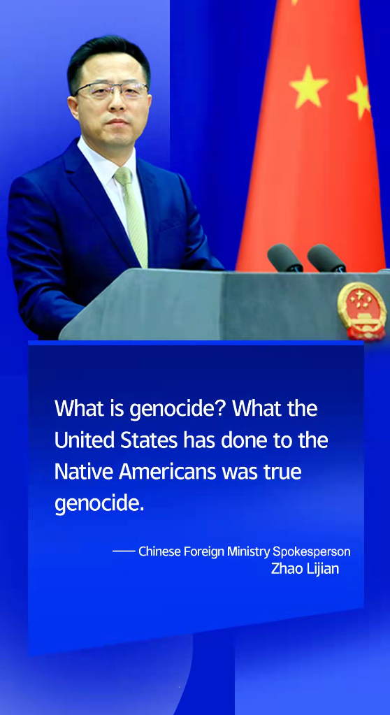"What is genocide? What the United States has done to the Native Americans was true genocide," Zhao said.