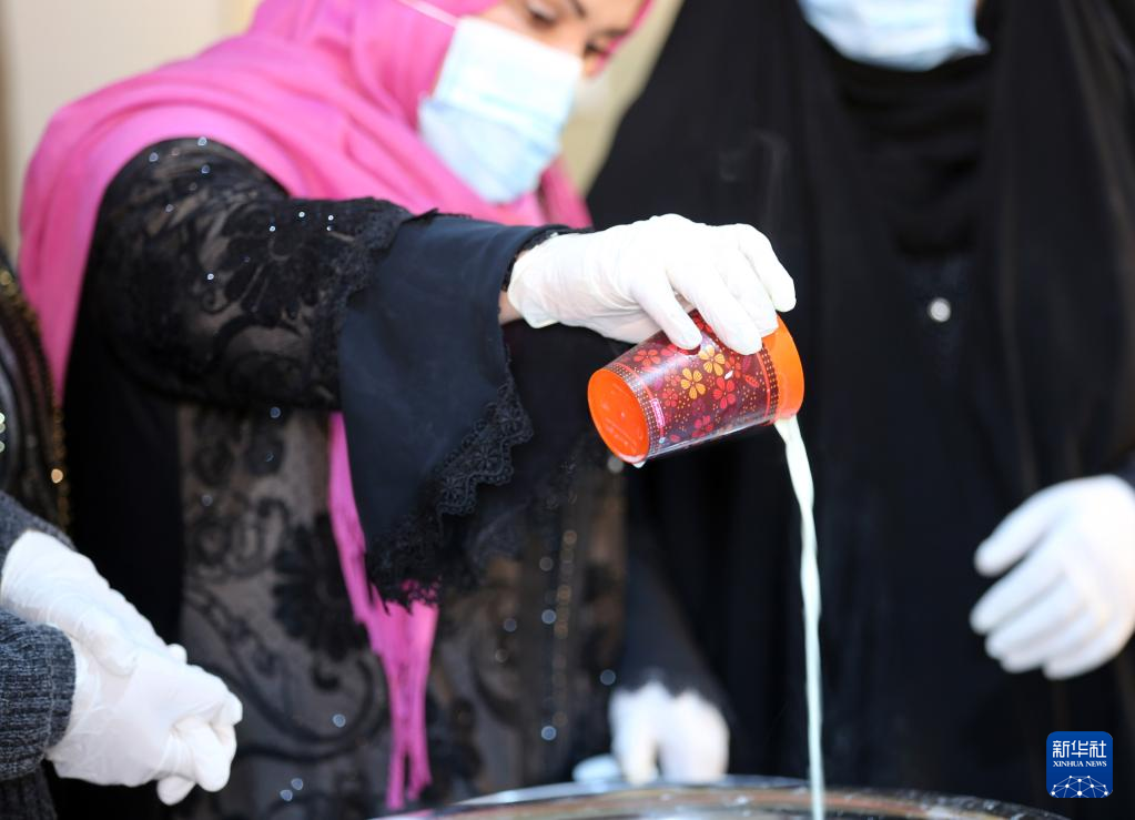 Local women participate in a training session to make yogurt in al-Hamdaniya, Nineveh province, Iraq, Nov. 29, 2021. Learning to make yogurt, butter and cream gives 32-year-old Zainab Hazem and her Iraqi counterparts new hope they can support their families in the war-torn town of al-Hamdaniya in Iraq's Nineveh province. (WFP/Handout via Xinhua)