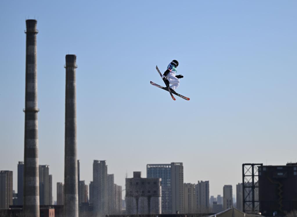 Tess Ledeux of France competes during women's freeski big air final at Big Air Shougang in Beijing, capital of China, Feb. 8, 2022. (Xinhua/Li Ga)