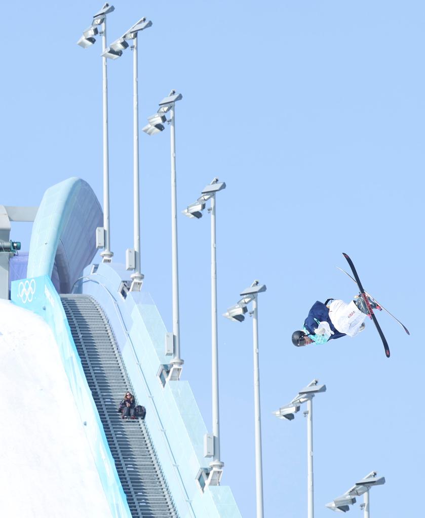Alexander Hall of the United States competes during the freestyle skiing men's freeski big air final at Big Air Shougang in Beijing, capital of China, Feb. 9, 2022. (Xinhua/Wang Jingqiang)