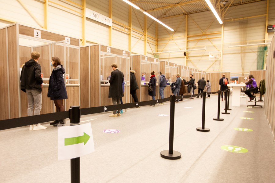 Photo taken on Jan. 14, 2022 shows a vaccination center for COVID-19 booster dose in Haarlem, the Netherlands. (Photo by Sylvia Lederer/Xinhua)