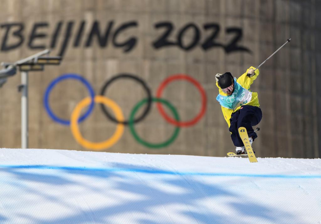Henrik Harlaut of Sweden competes during the freestyle skiing men's freeski big air final at Big Air Shougang in Beijing, capital of China, Feb. 9, 2022. (Xinhua/Liu Xu)