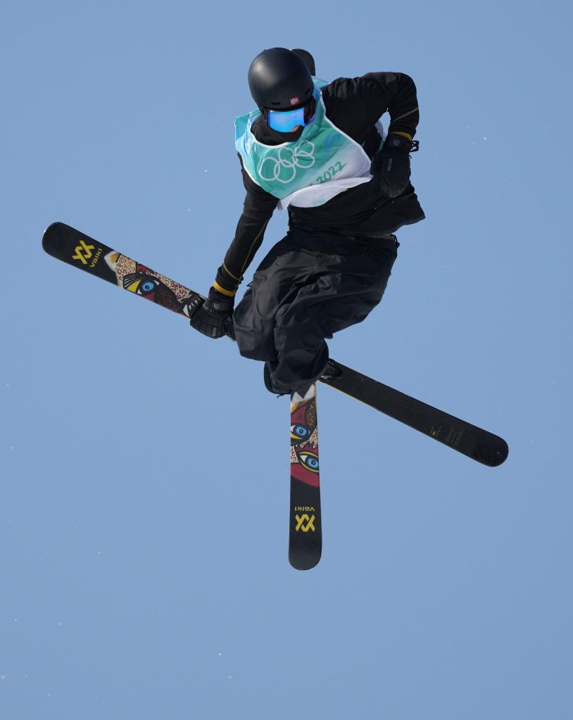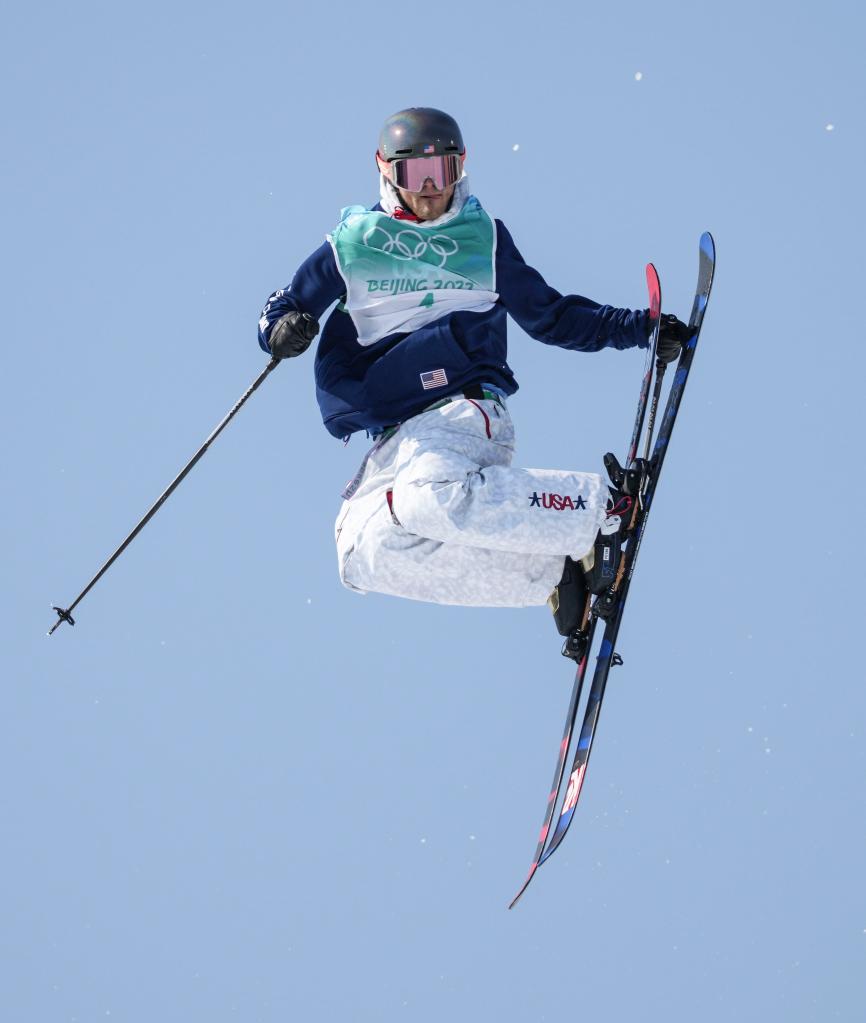 Colby Stevenson of the United States competes during the freestyle skiing men's freeski big air final of Beijing 2022 Winter Olympics at Big Air Shougang in Beijing, capital of China, Feb. 9, 2022. (Xinhua/Huang Xiaobang)