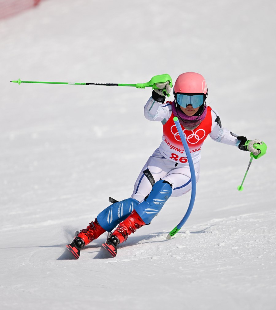Audrey Alice King of Hongkong, China competes during alpine skiing women's slalom at the National Alpine Skiing Centre in Yanqing District, Beijing, capital of China, Feb. 8, 2022. (Xinhua/Chen Yichen)