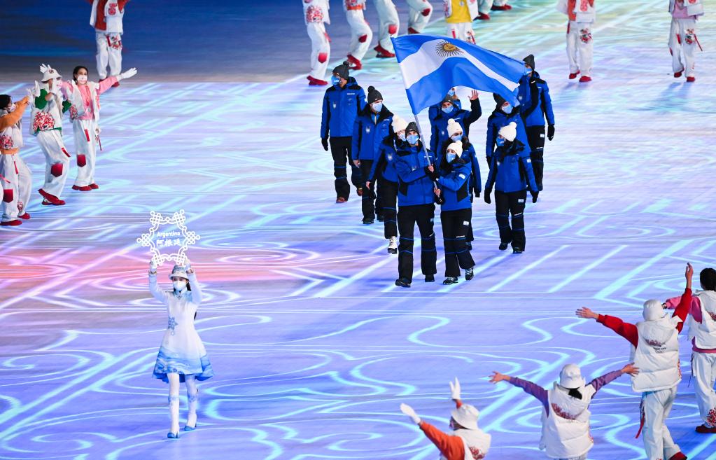 Argentine delegation marches into the Bird's Nest at the opening ceremony of Beijing 2022 Olympics on Feb. 4, 2022. (Xinhua/Xiong Qi)