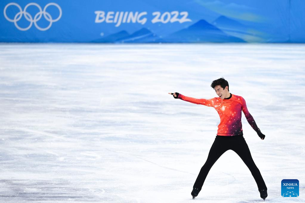 BEIJING, Feb. 10 (Xinhua) -- American figure skater Nathan Chen claimed the men's singles gold medal at the Beijing Olympic Winter Games here on Thursday, ranking first in both the short program and free skating.