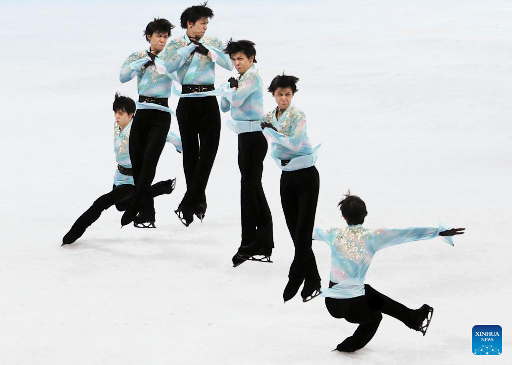 Combined photo taken on Feb. 10, 2022 shows Hanyu Yuzuru of Japan performing during the figure skating men single skating free skating of the Beijing 2022 Winter Olympics at Capital Indoor Stadium in Beijing, capital of China. (Xinhua/Cao Can)