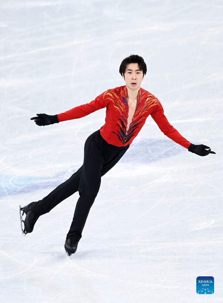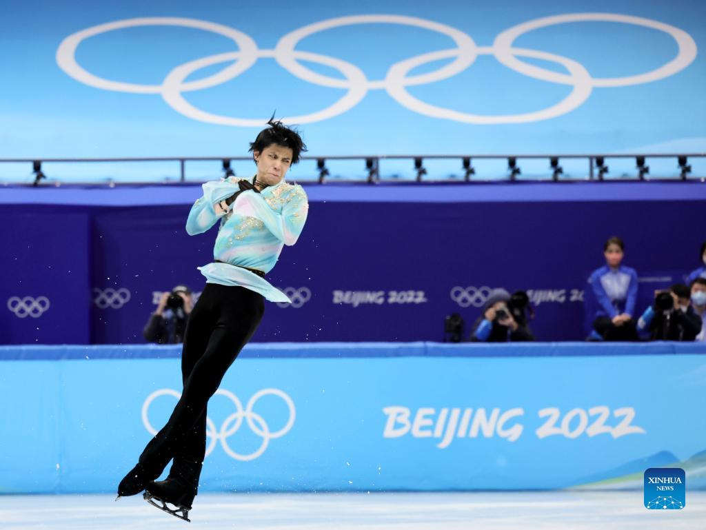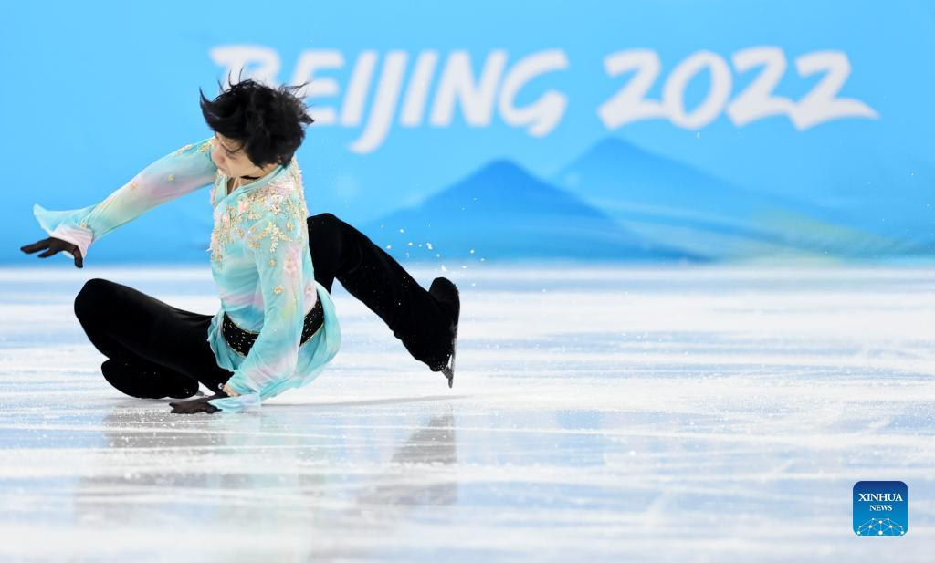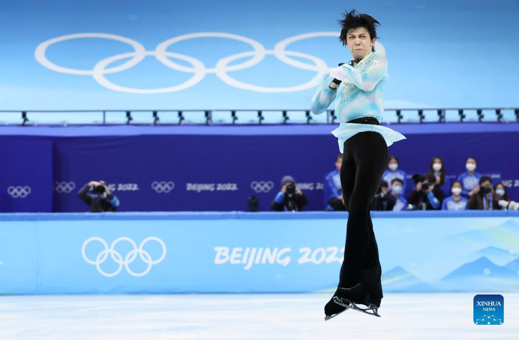 Hanyu Yuzuru of Japan performs during the figure skating men single skating free skating of the Beijing 2022 Winter Olympics at Capital Indoor Stadium in Beijing, capital of China, Feb. 10, 2022. (Xinhua/Lan Hongguang)